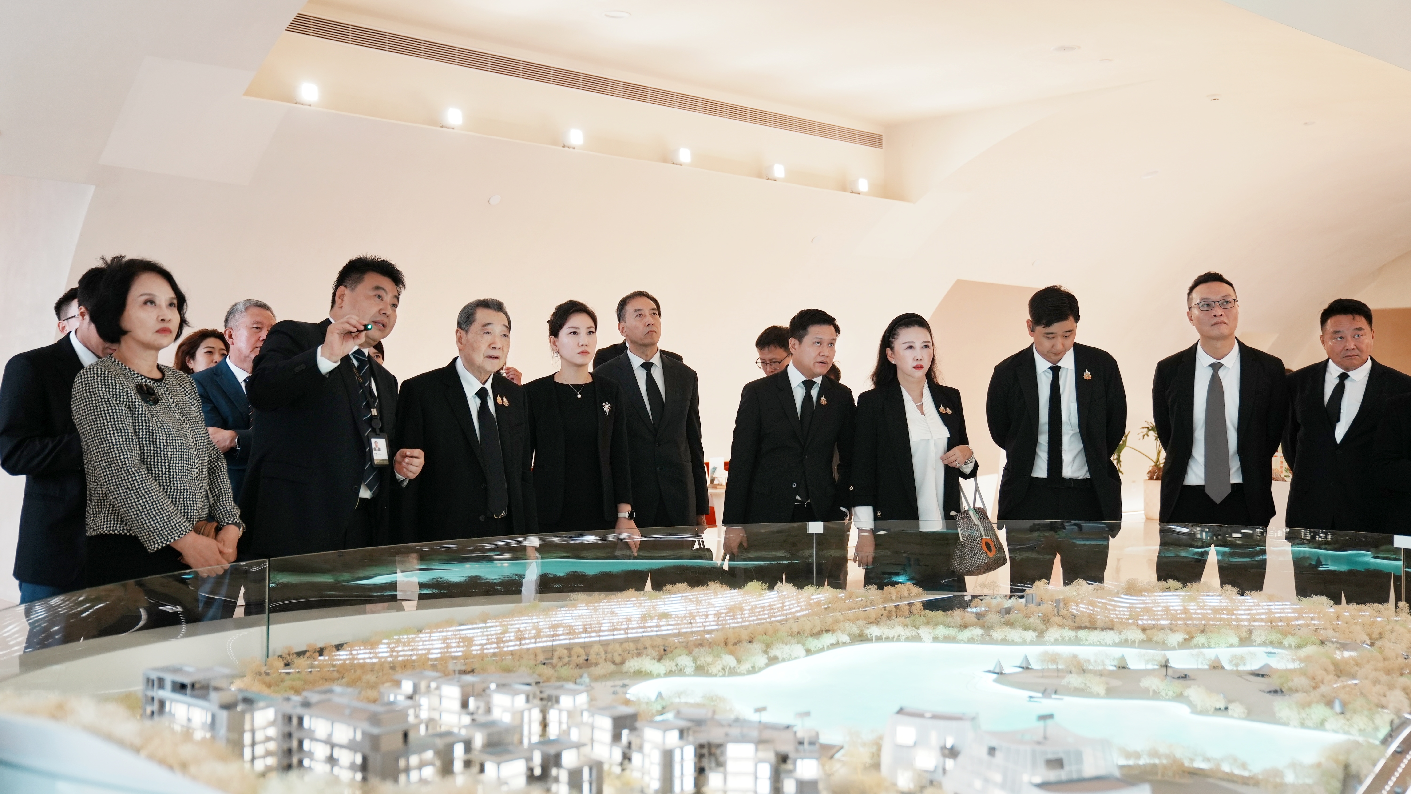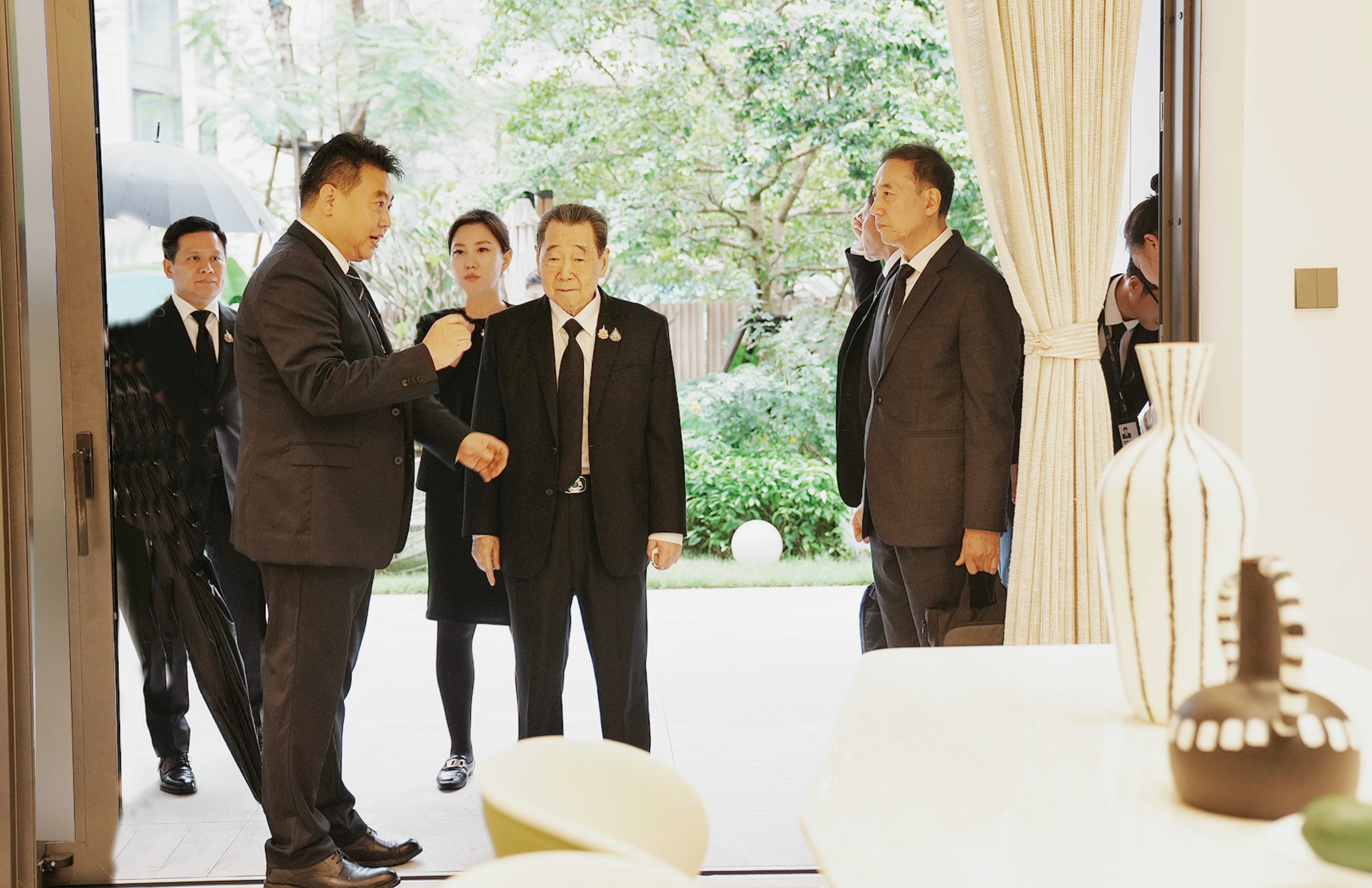 ▲谢国民集团资深董事长参观正大·太阳河咖啡小镇样板间。